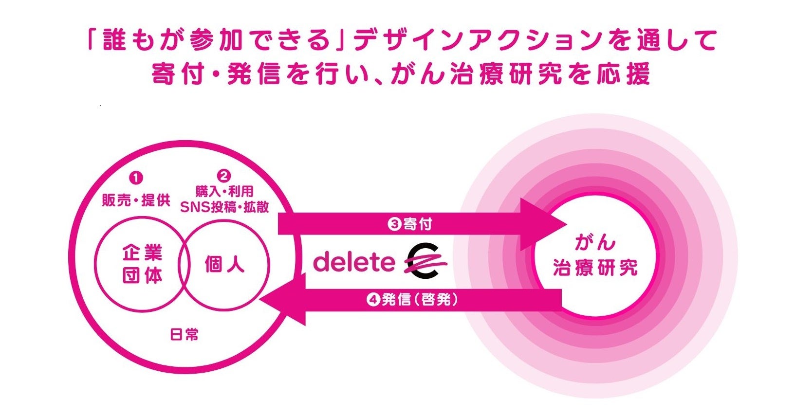 deleteCは、個人、企業、組織などの立場を越え、がんを治せる病気にしたい、という想いを自由に意思表示することで、誰もががん治療研究を応援できる仕組みをつくり、がん治療研究への寄付と啓発を通じて、1日でも早く「がんを治せる病気にする日」を手繰り寄せることに貢献します。