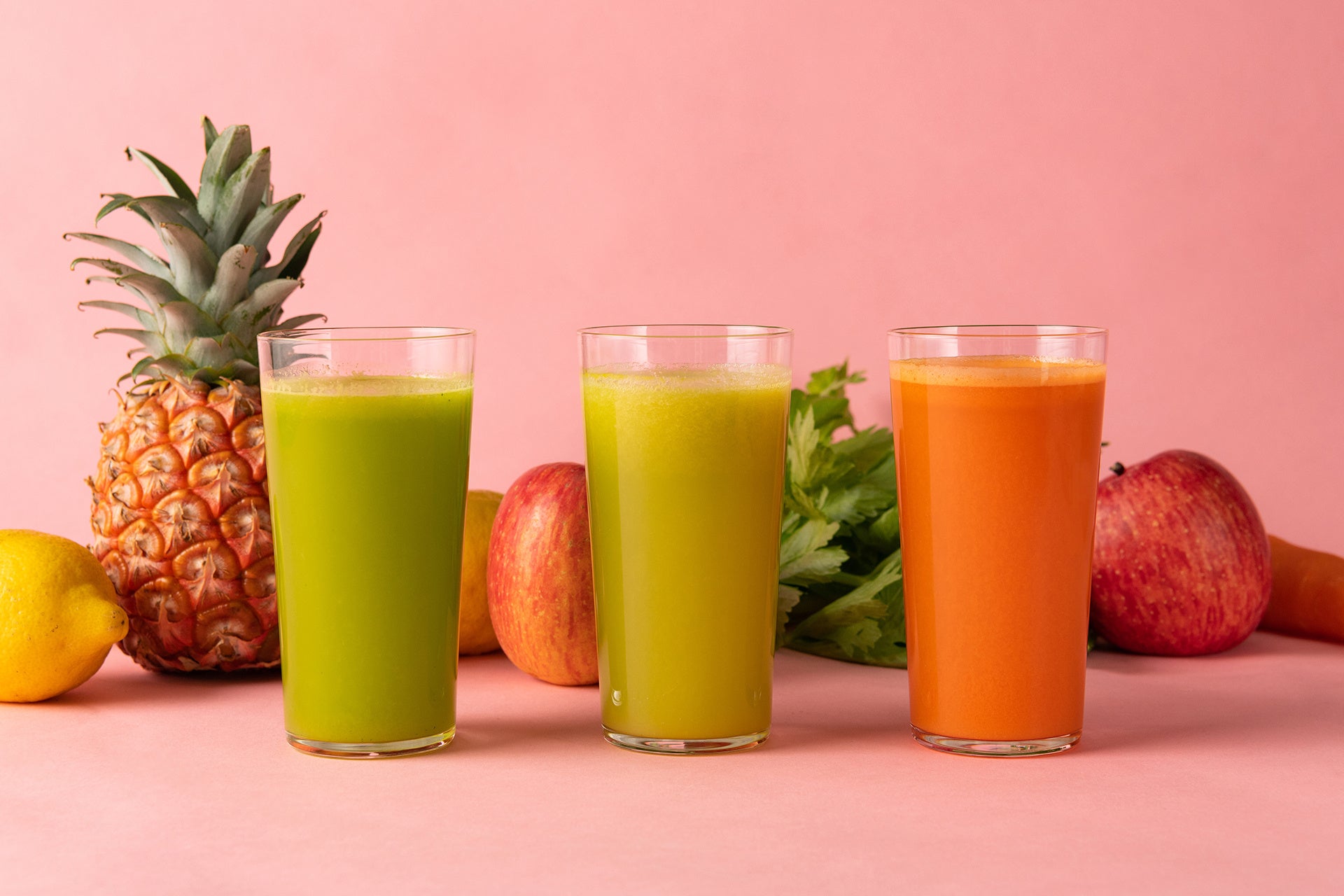 (左から:アップル・キャロット・セロリ/アップル・レモン・キューカンバー/パイナップル・キューカンバー・レモン・パセリ・アップル)