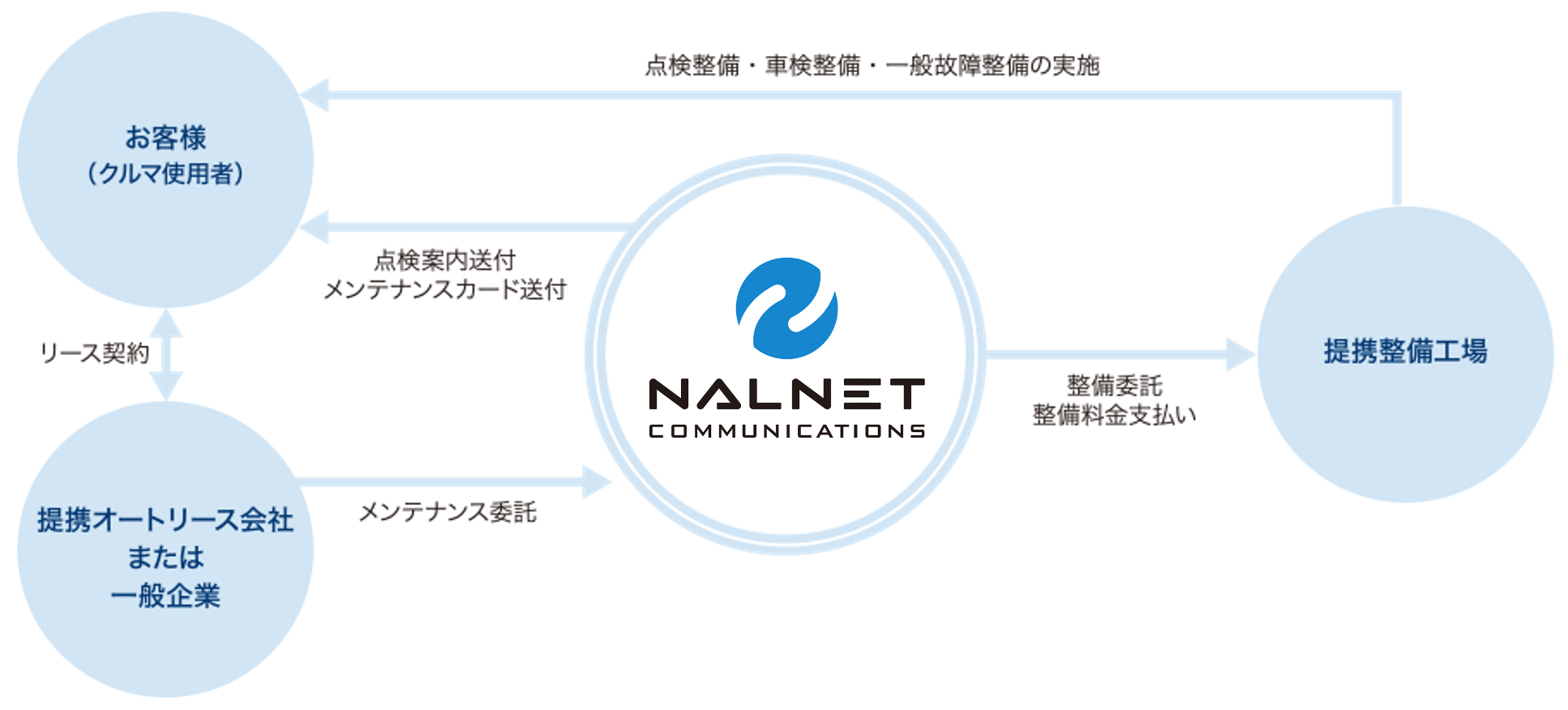 ナルネットコミュニケーションズは、愛知県を本拠地とする自動車メンテナンス受託管理会社です。1978年「日本オートリース」として誕生後、徐々に事業を拡大し、オートリース会社に対する車両管理・メンテナンスや残価保証、個人向けリース商品の企画・提案、メンテナンスパックの販売や車両買取などを実施しています。全国約11,500カ所の提携工場に委託している管理車両のメンテナンスを本社で一元的に管理し、効率的なデータ管理や顧客対応を提供しています。