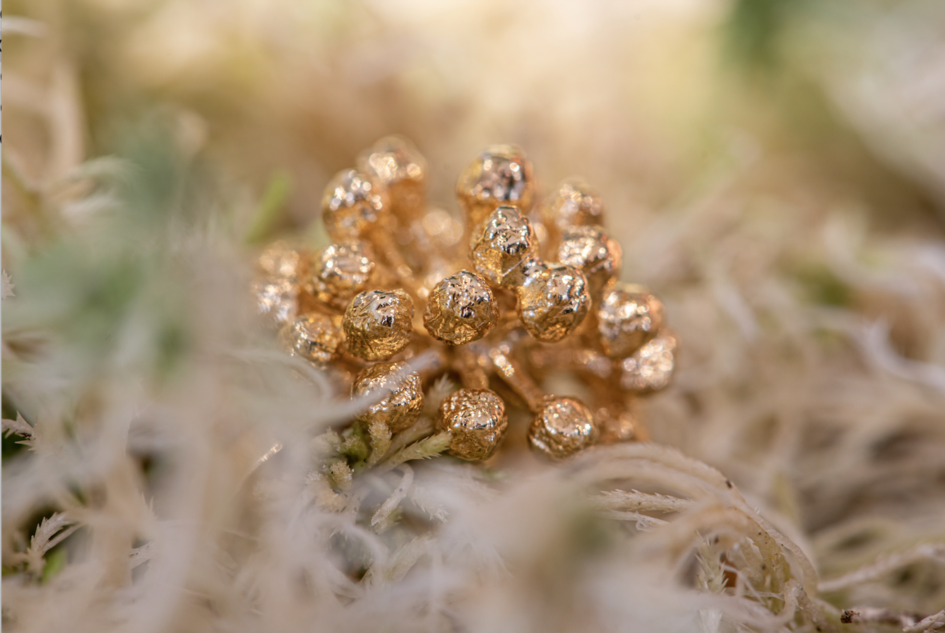 パセリ・コレクションは、天然のパセリの房をスターリングシルバーに浸し、24Kゴールドでコーティングして制作しています。手作業で一つ一つオーガニックの持ち味を生かして成型されたワンアンドオンリーのアイテムです。1952年の創業以来、フローラダニカは自然界に由来する独自のデザインに基づいたジュエリーを制作することをコンセプトにしています。