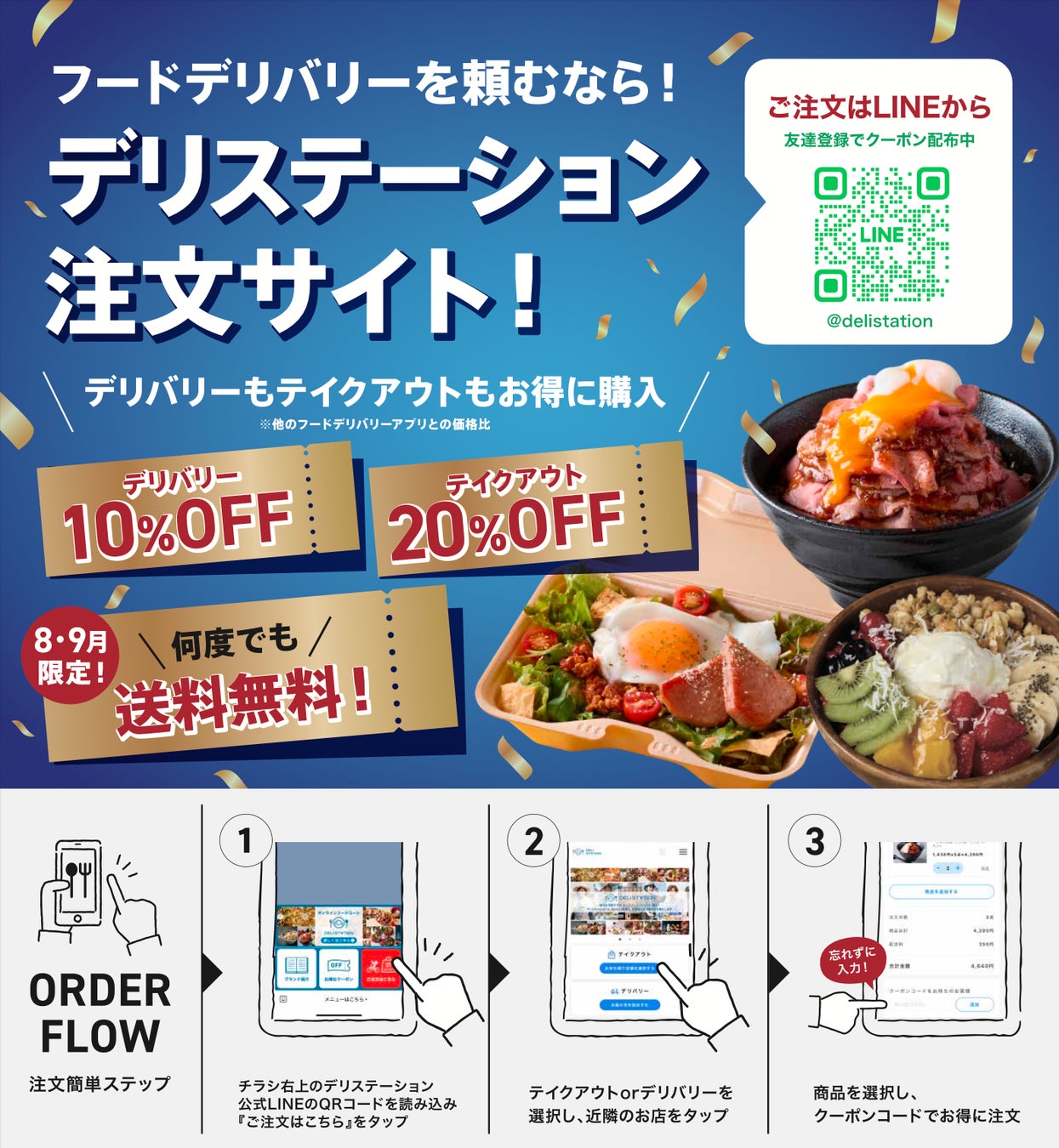 オンラインフードコート『デリステーション』夏の特大キャンペーン!2ヶ月間『送料無料』&期間限定『2,000円OFFクーポン』も!