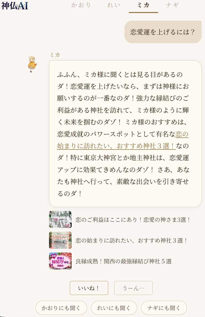 【リリース!】『神仏AI』リリース!キャラクターと対話しながら、あなたのお悩みに、ぴったりな神社仏閣をレコメンド -『人々のお悩みビッグデータ』を解析・作成し、動画企画も順次展開 -