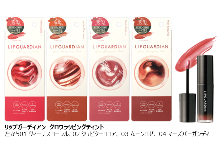 ティッシュオフなしでもカップにつきにくい、進化系※1 ティントグロス「リップガーディアン グロウラッピングティント」。唇の上でトップコート層を形成し、色・ツヤ・うるおいを1日中※2 守り、美しい仕上がりが続くとご好評いただいております。今回の限定色は、唇きらめくパール入り、甘さと華やかさのある大人ピュアピンク。ガラスのようなツヤ仕上がりの透け感・高発色をぜひお楽しみください。