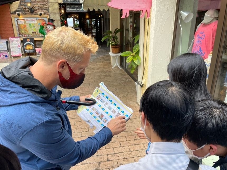 セッション1,2では、HelloWorld!独自のノウハウが詰まった「ロゲイニング」を行います。児童生徒4-6人のグループが沖縄に住む外国人とチームを組み、地図をもとにチェックポイントをまわって得点を競うゲーム。
