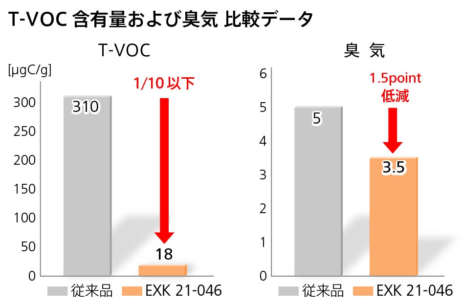 さらに、自動車内装においてもEV化や自動運転技術の発展に伴い車内の“居住空間化”が進み、より快適な環境を求めて低臭気・低VOC材料の需要が高まっており、内装材料における「低臭気・低VOCニーズ」は世界的なトレンドとなっています。