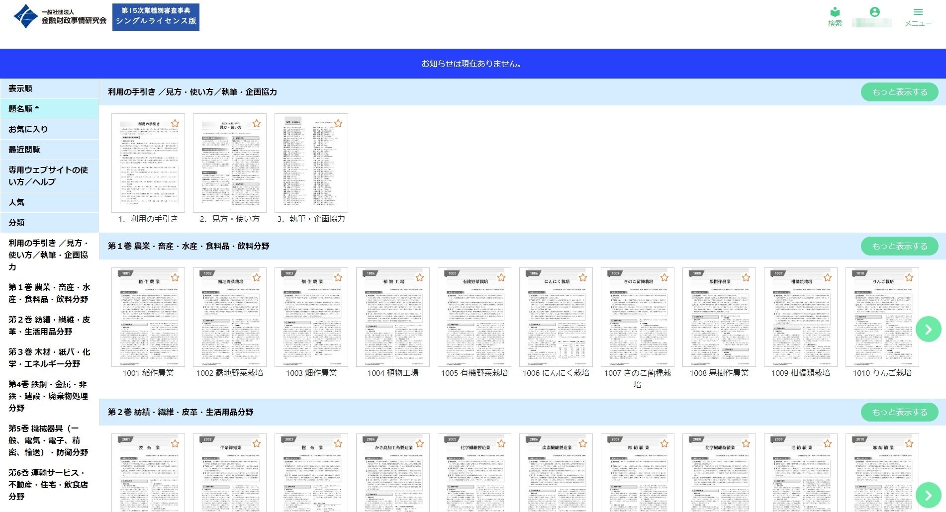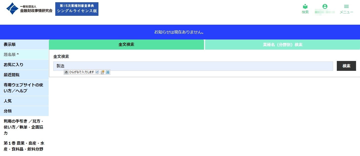 【「第15次業種別審査事典」シングルライセンス版 画面】