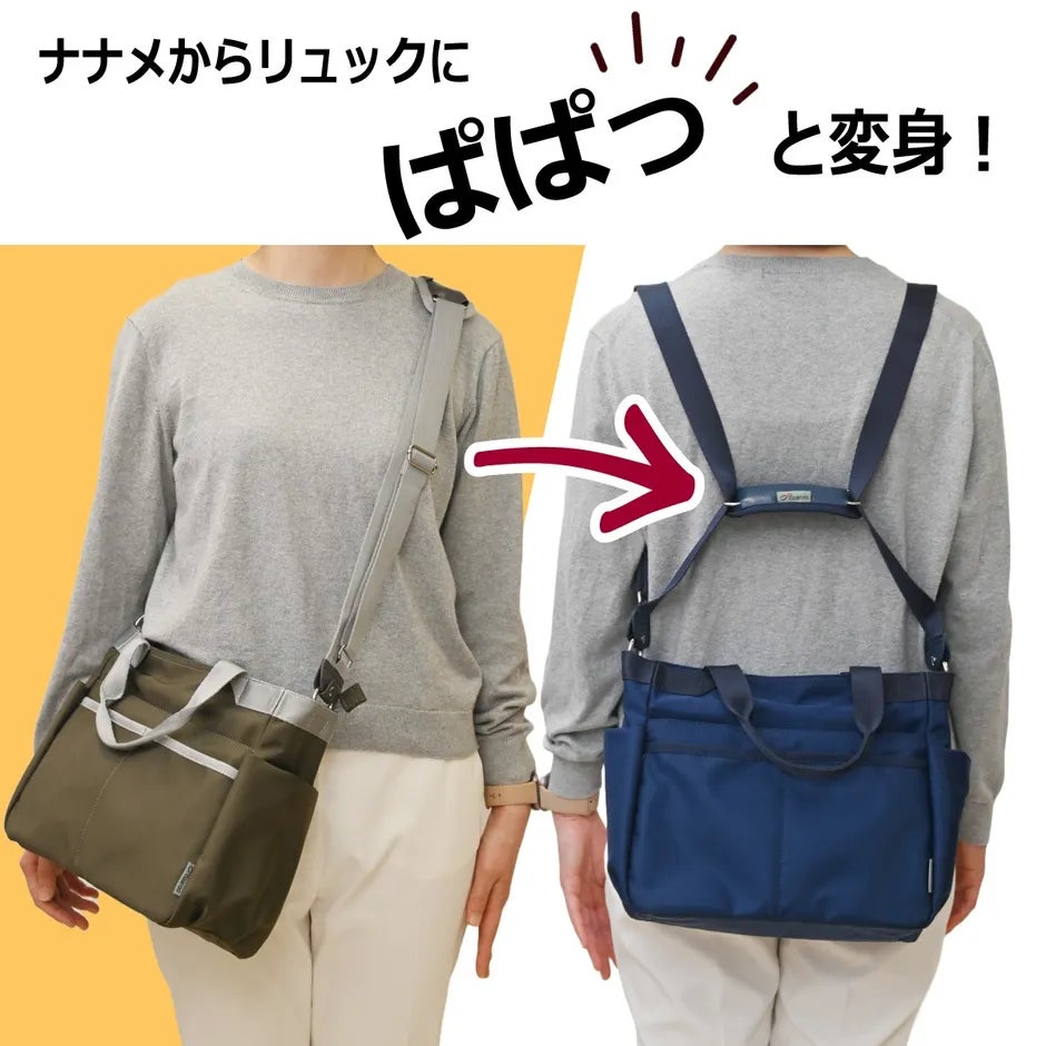 トートバッグや斜め掛けショルダーバッグは、片方の肩にだけ重さが集中するので肩や首こりの原因にもなりがちで、これを解消しようとすると、リュックにするしかないけど、リュックにするしかない?となってしまいます。でもリュックだと背中に熱がこもるし、ポケットに手が届かないので不便です。