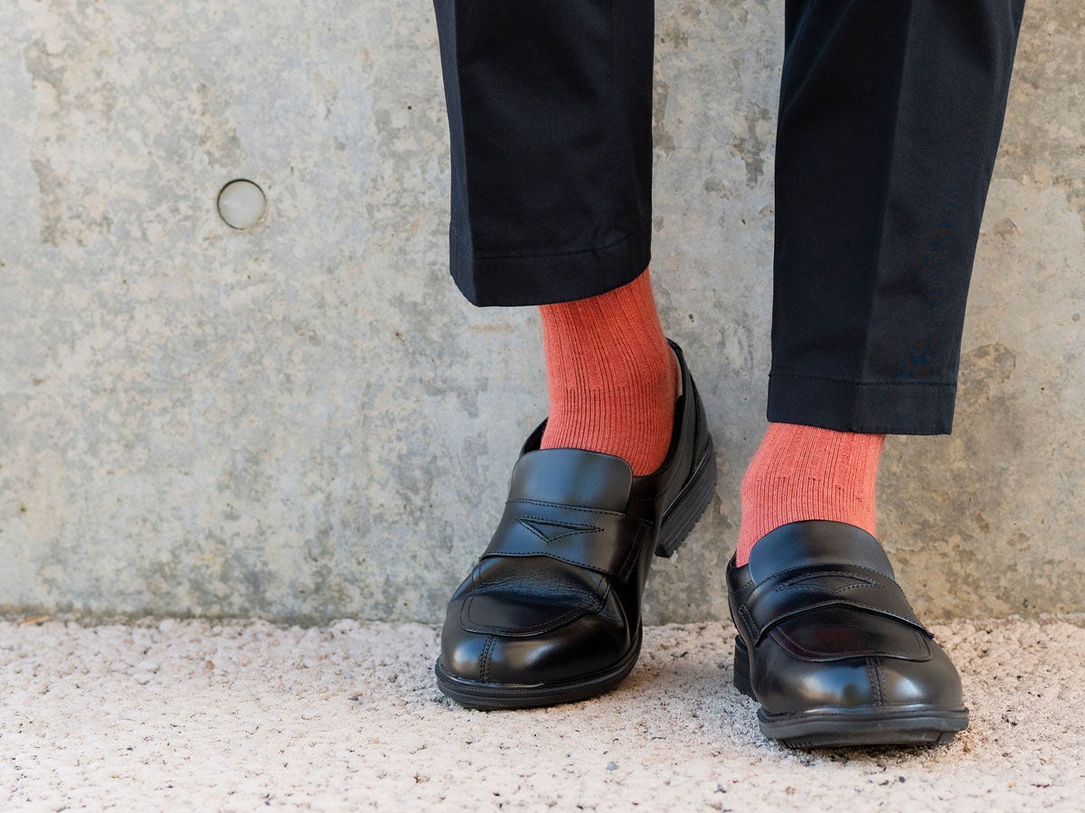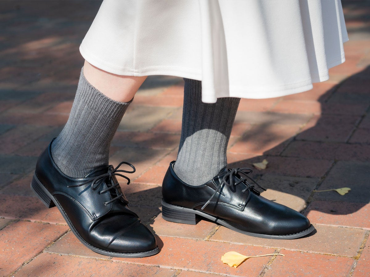 2023年秋の限定カラーは「レンガ」と「瓦(かわら)」。建造物からモチーフを切り取った2色は秋の風景になじむ落ち着きのあるカラーです。杢調の少しくすんだ風合いが足元に大人らしさを演出します。