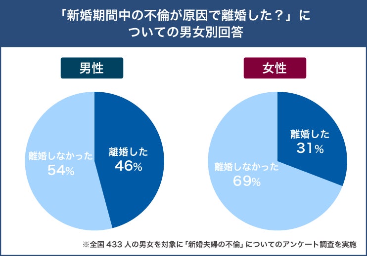 一方で、新婚女性の場合、男性よりも早く結婚後1年以内に不倫に走るケースが多いことが分かりました。
