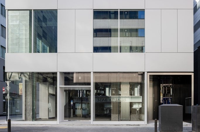 デザインはミニマルかつ端正なファサードを目指しました。低層部の白いアルミパネルや大開口サッシのラインに呼応するように配された高層部のガラスパターンによって、建物の全体調和を図っています。昼には煌びやかな銀座の街並みの中でも凛とした上質な印象をもたらし、夜にはインテリアの賑わいの表出と伸びやかな外装照明が相まって銀座の街並みに様々な表情を与えます。