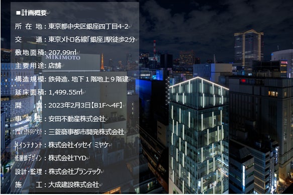 ビルの地下1階から4階は、株式会社イッセイ ミヤケに賃貸し、世界に向けた旗艦店「ISSEY MIYAKE GINZA / 442」として、2023年2月3日に開業します。