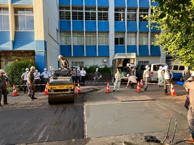 8月31日(水) NEDO・グリーンイノベーション基金事業の一環として、(一社)生コン・残コンソリューション技術研究会(以下、RRCS)が主催し、東京都豊島区・草苑学園の敷地内にて試験施工を実施致しました。団体概要はこちら:https://rrcs-association.or.jp/index.html