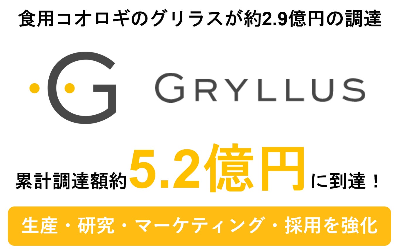 食用コオロギ国内生産量No.1のグリラスが約2.9億円の資金調達を実施!累計調達額は業界最高額の約5.2億円に到達