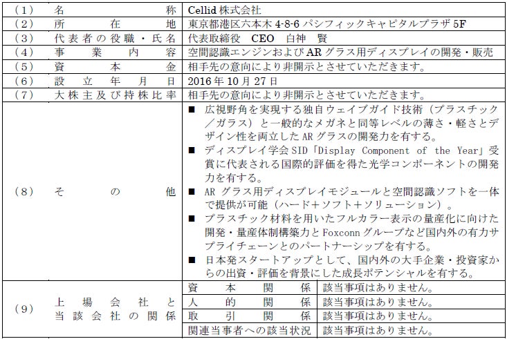 こうした状況を踏まえ、当社は、国内で唯一ウェイブガイド光学技術(注3)を有するCellid株式会社(以下、「Cellid社」という。)と、眼鏡産地である鯖江で高いデザイン力と製造実績を有する株式会社ボストンクラブ(以下、「ボストンクラブ社」という。)との協業体制を構築することで、「普段掛ける眼鏡の延長で使用できる日本発AR Glass」の提供が可能と判断しております。
