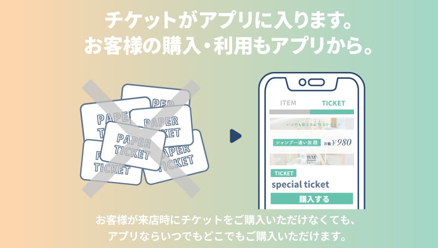 本リリースにより、お客様の来店頻度をコントロールしながら安定した収益を確保することが可能になります。また、紙のチケットのデータ化によって、枚数管理や発注管理、利用履歴の管理にかかる時間を大幅に削減しながら、自動で記録することができるため、販売から利用履歴の確認、在庫管理まで管理画面ひとつで実現できます。