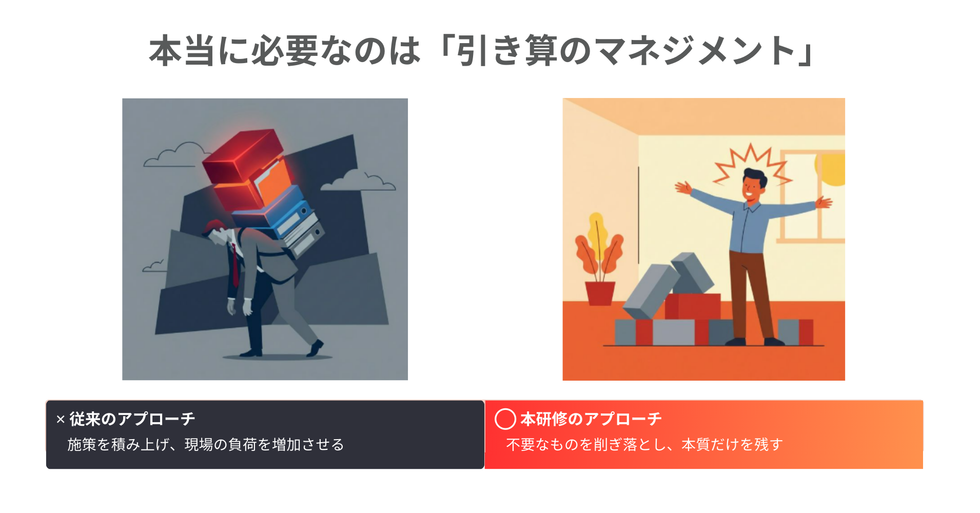 ■プログラム開発の背景:良かれと思った「足し算の経営」が現場を壊している