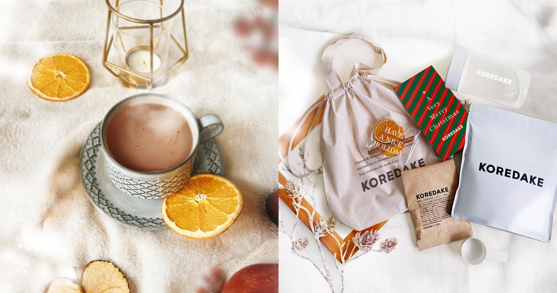 また、プチギフトのドライオレンジとシナモンスティックは、温めたカカオに入れたり、オーナメントを作ってクリスマスツリーに飾って楽しむこともできます。ウェルネスプロテイン『KOREDAKE』が贈る特別なホリデーシーズンをお過ごしください。