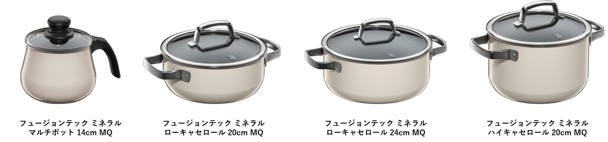 これまで「フュージョンテック ミネラル」のカラーには、鉱物にちなんだ名前がつけられており、「ダークブラス(DR)」、「プラチナム(PL)」、「ローズクォーツ(RQ)」、「ジェイド(JD)」の4色があります。限定カラーの「ミルキークォーツ(MQ)」は、乳白色の水晶を表し、軽やかなクリームベージュで、どんな料理とも相性が良く、上品な可愛さがキッチンやインテリアに優しくとけ込むトレンドカラーです。