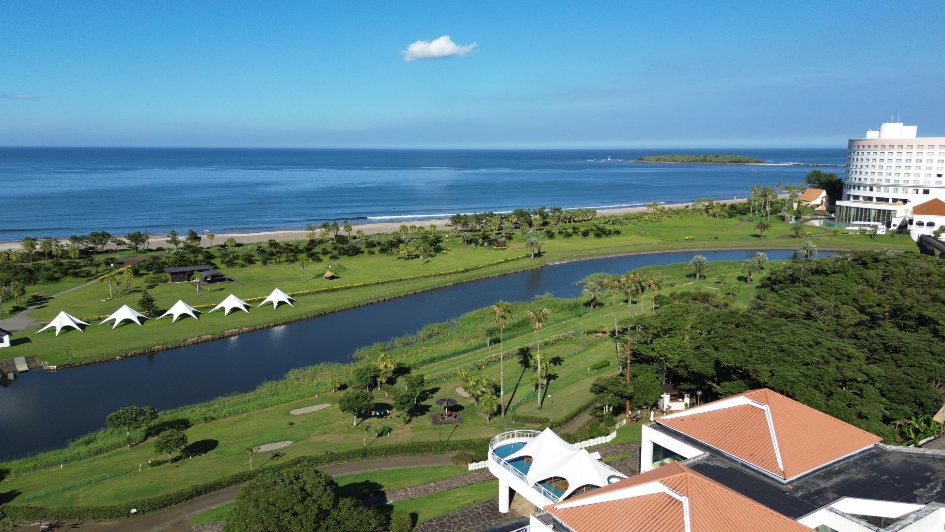 また、AOSHIMA PICNIC CLUB OCEANSIDE CAMP AREAは、 日南海岸国定公園第二種特別地域であり、宮崎県の管轄エリアです。 宮崎県知事より河川敷地占用許可準則に基づく都市・地域再生等利用区域に指定され、 知福川右岸河川敷利用調整協議会の認定を受けた、こどものくにビルドアッププロジェクト事業体 (宮崎交通株式会社・株式会社Libertyship)が2024年4月より環境維持を目的に事業運営及び 管理を行っております。