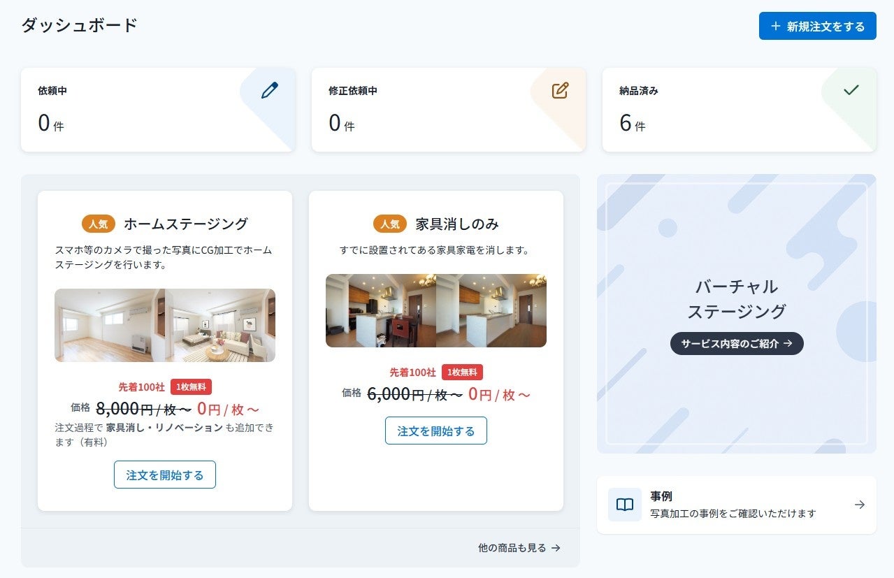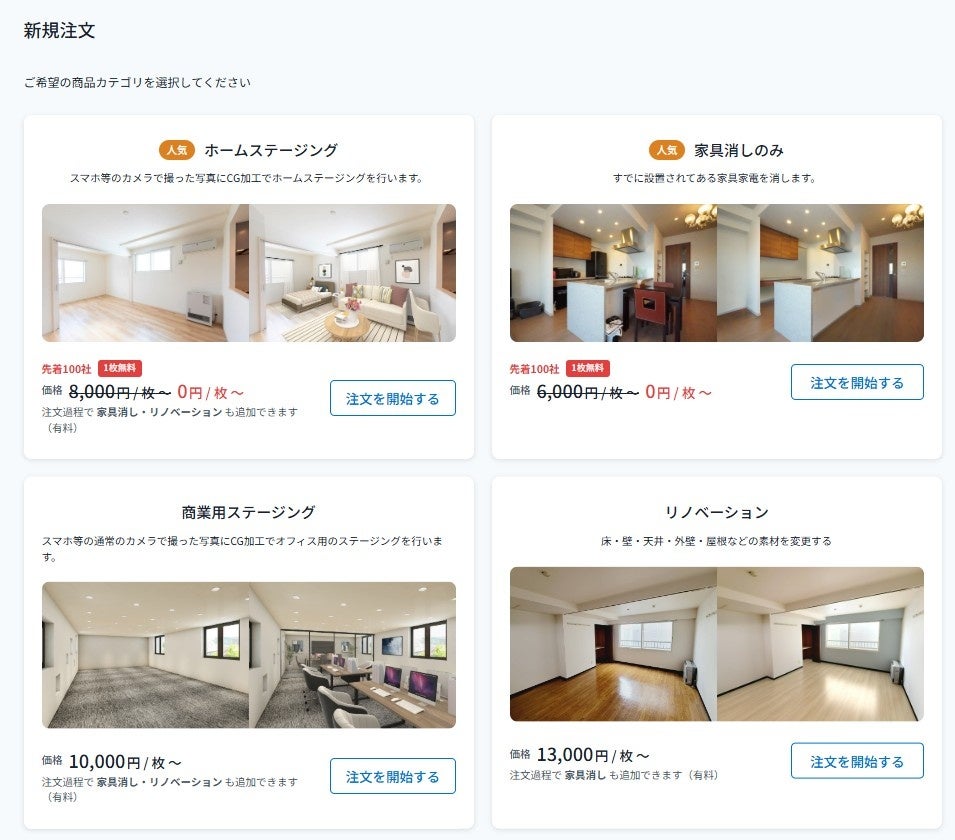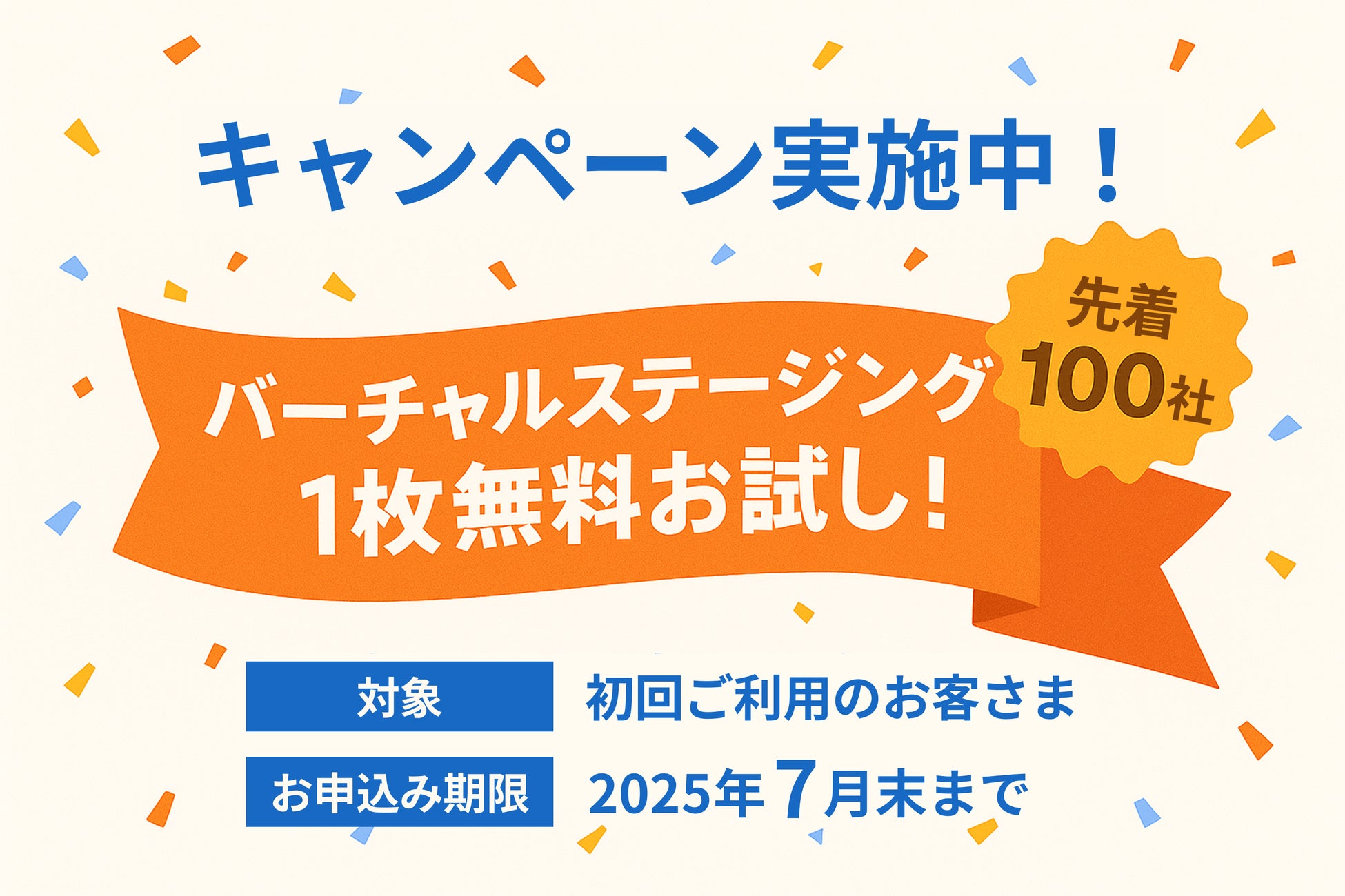 バーチャルステージング機能のリリースを記念し、先着100社まで1枚無料キャンペーンを実施中です。