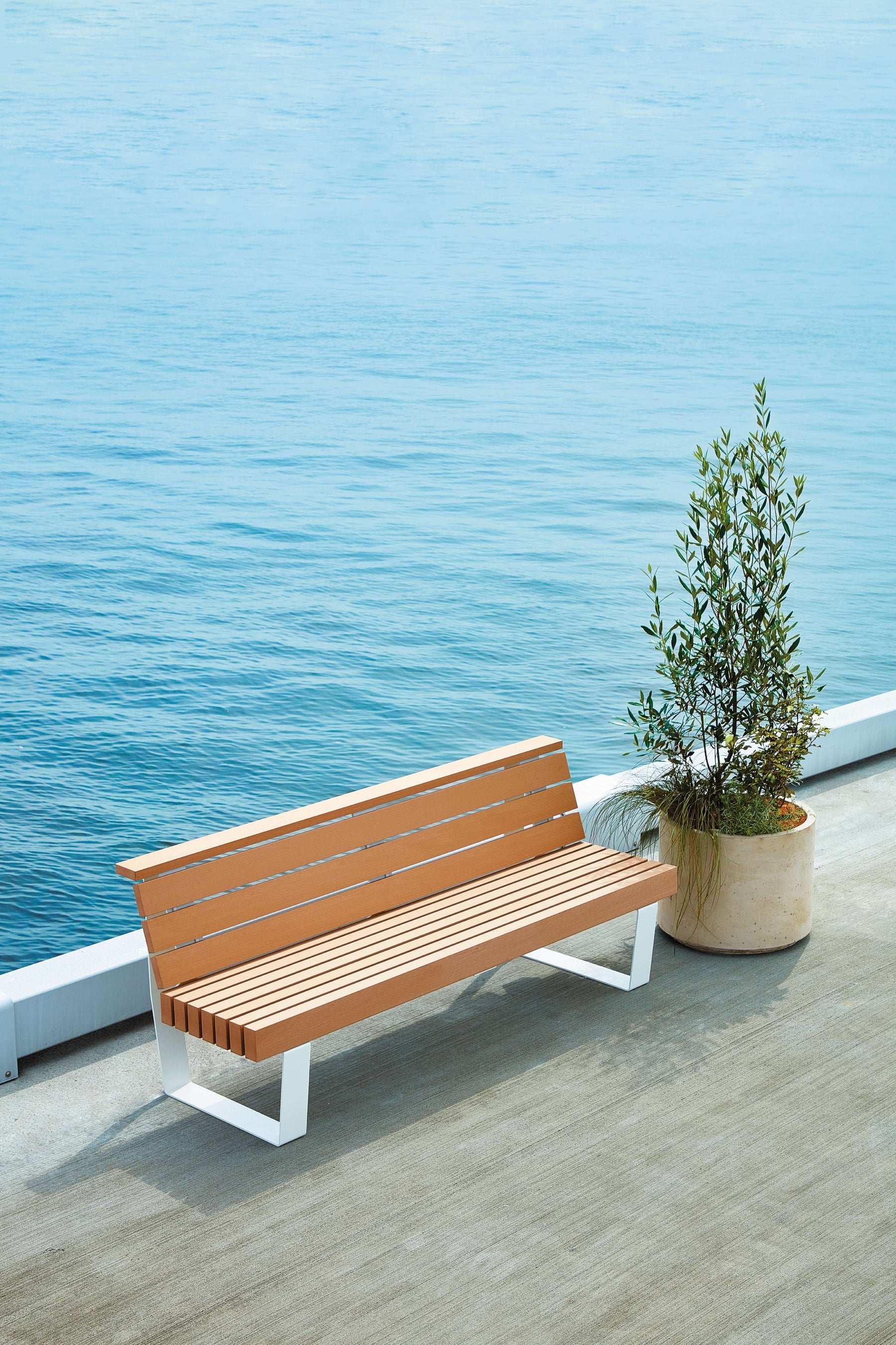 「ファンダライン」は、自然と人々を迎えいれてくれる普遍的でやさしいデザインを心掛け、大きな広場から建物の軒先まで、さまざまな「まちの1階」に人が自由にいられる場所を提供することを目標にした新しい屋外家具ブランドシリーズです。