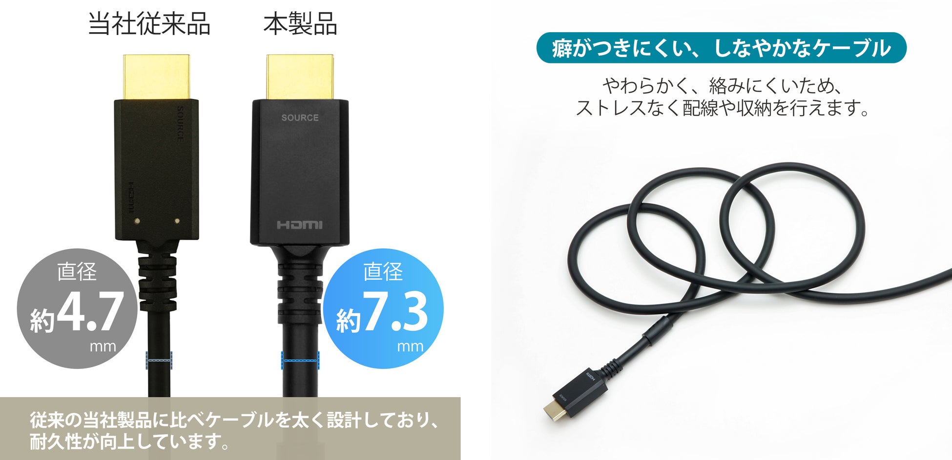 負荷やノイズに強い高耐久仕様の光ファイバーHDMIケーブルを新発売
