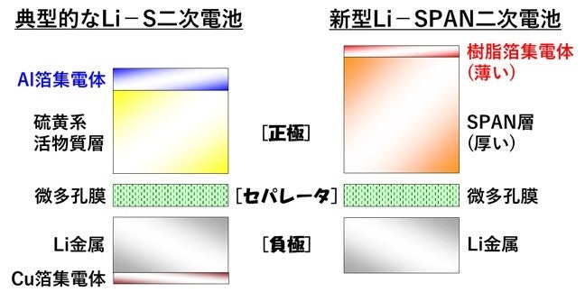 世界初!SPANと樹脂箔を用いた軽量リチウム-硫黄二次電池の試作・実証に成功