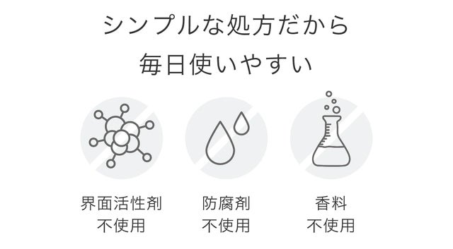 - 界面活性剤不使用。ミニマルな処方なのにしっかり保湿