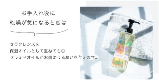 スキンケア成分で作られたセラクレンズは、洗顔後オイルが肌に残っていても大丈夫。