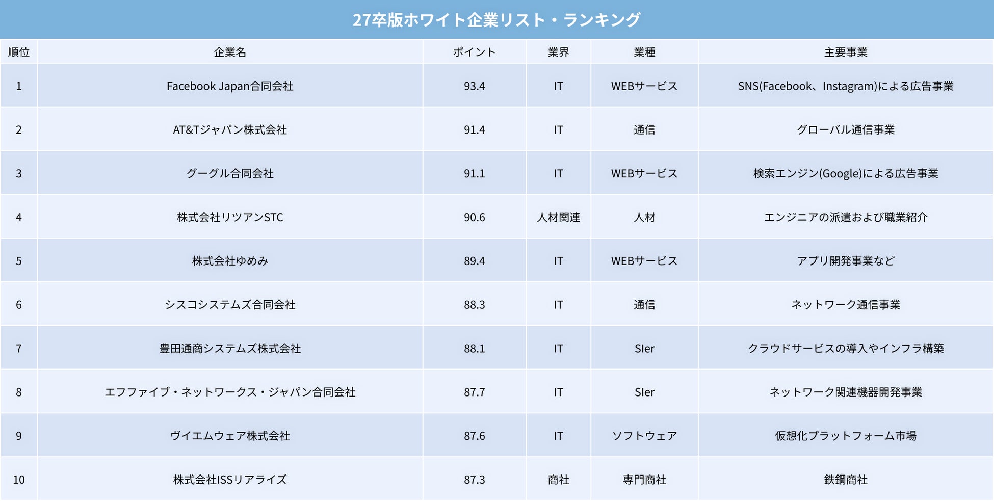 2027年卒版「一流ホワイト企業ランキングTOP100」発表!