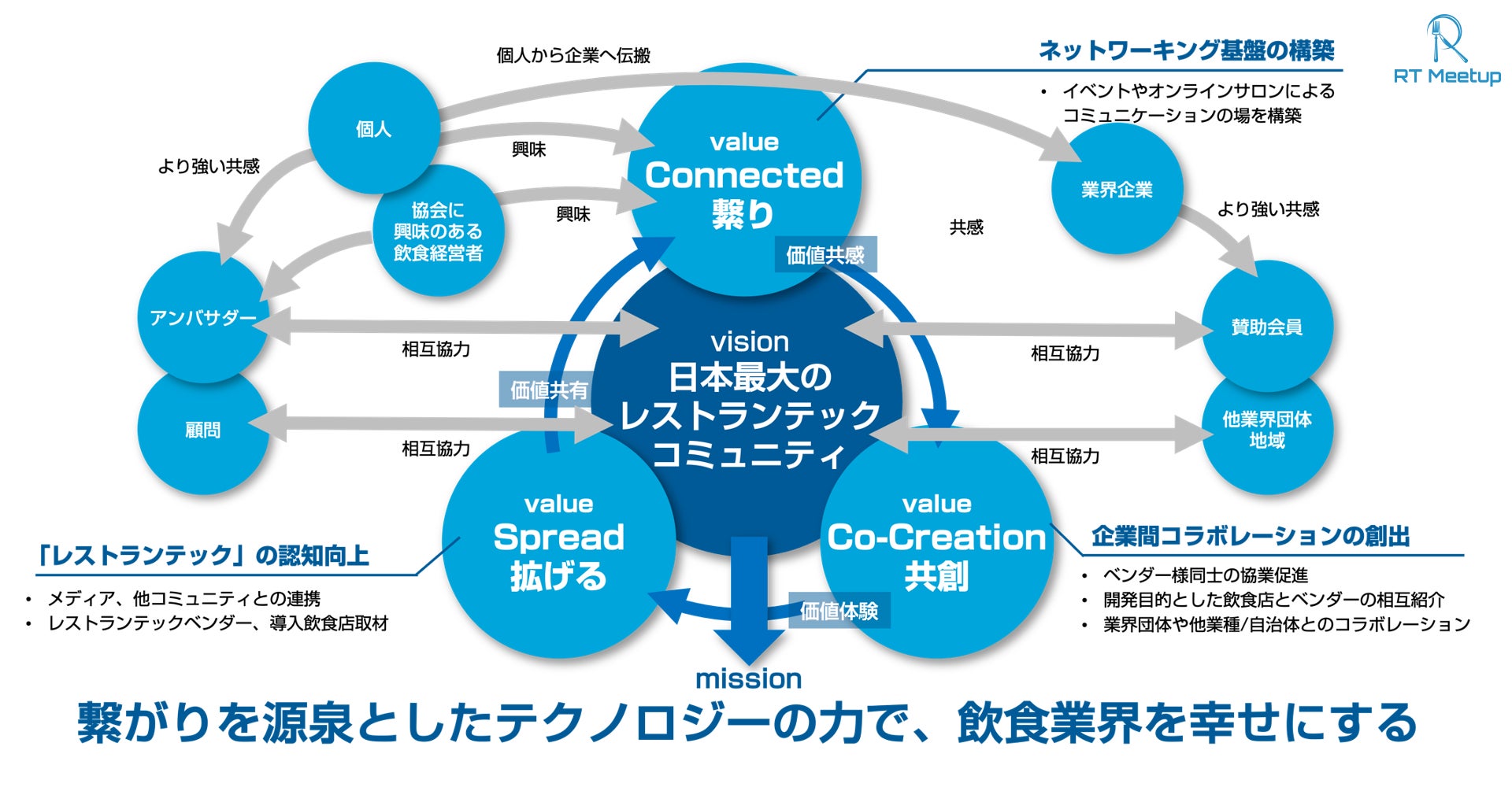 テクノロジー企業を中心とした賛助会員の皆様をはじめ、数多くの業界企業や業界団体の皆様と共に、数多くのイベントやコミュニティ運営を通じて、飲食業界へDXの普及活動を行なっております。