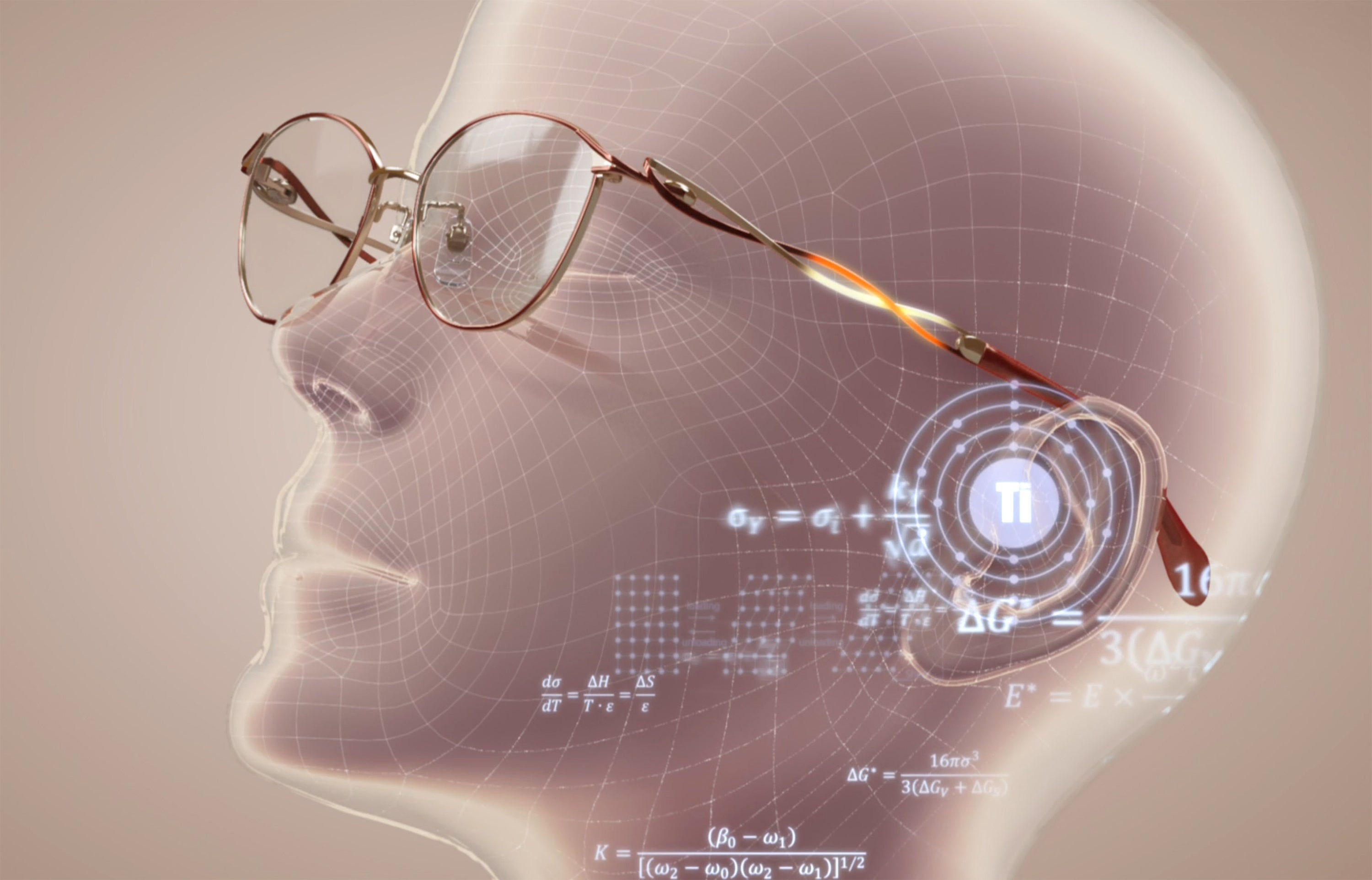 金属研究の世界的権威である東北大学金属材料研究所と、8年の歳月をかけて開発した眼鏡のための素材。しなやかなバネ性、形状記憶性、優れた加工性を持つ、眼鏡素材として世界初のニッケルを含まない超弾性形状記憶チタン合金(※2)です。日米中特許取得済。