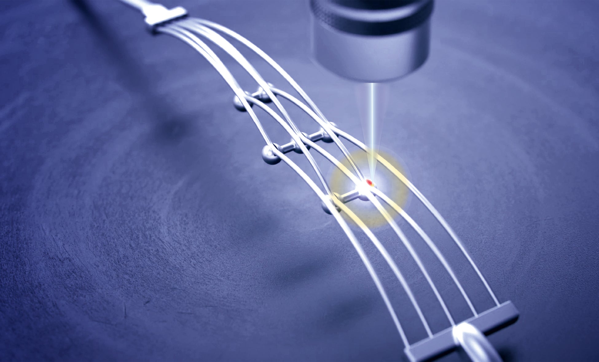 大阪大学の接合科学研究所、ふくい産業支援センターとの共同開発により、5年の歳月をかけて完成した接合技術で、0.5mm以下のピンポイントで強度や素材の特性を保ったまま素材同士を接合することが可能となりました。