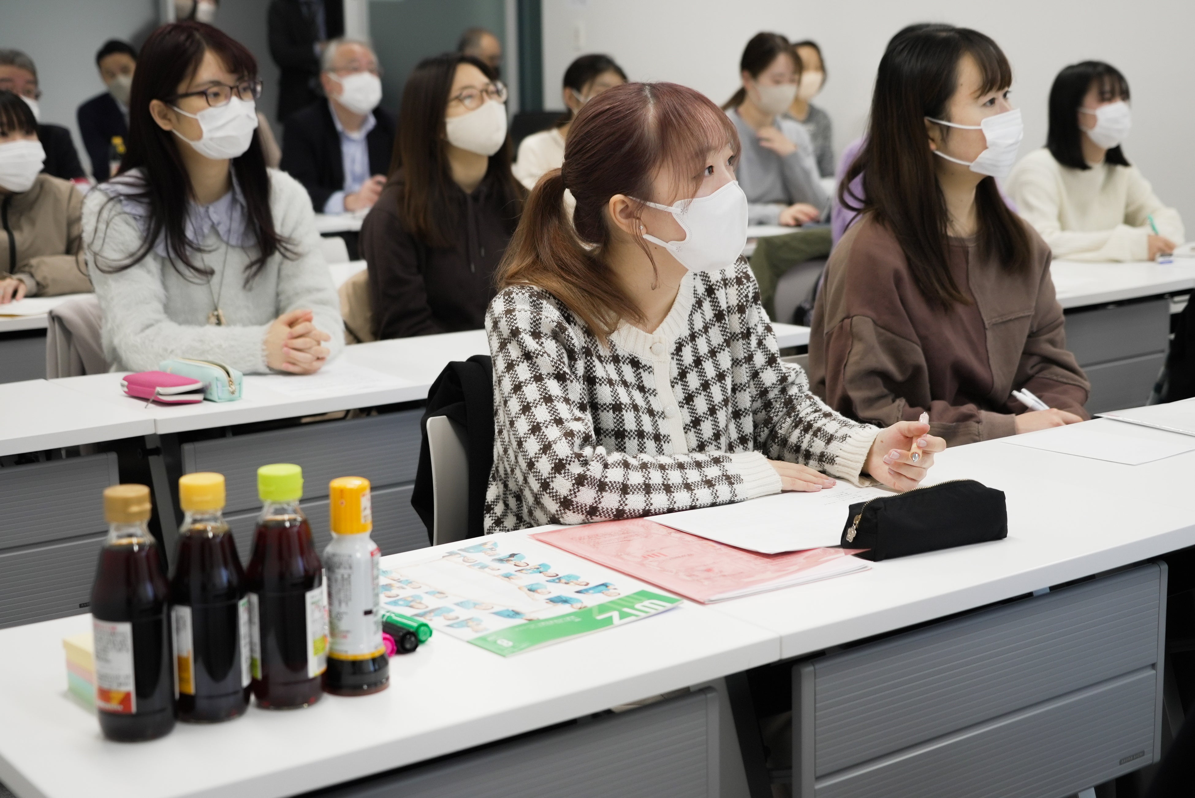 その後、約半年にわたり、学部・学科を越えた授業として『課題解決型ワークショップ にっぽん食を考える』を実施しました。様々な講師が登壇して“食と健康”、“おいしさの考え方”、“持続可能な食”、“若者の考える食”など、食を多角的に学び、“にっぽん食”を探求しました。