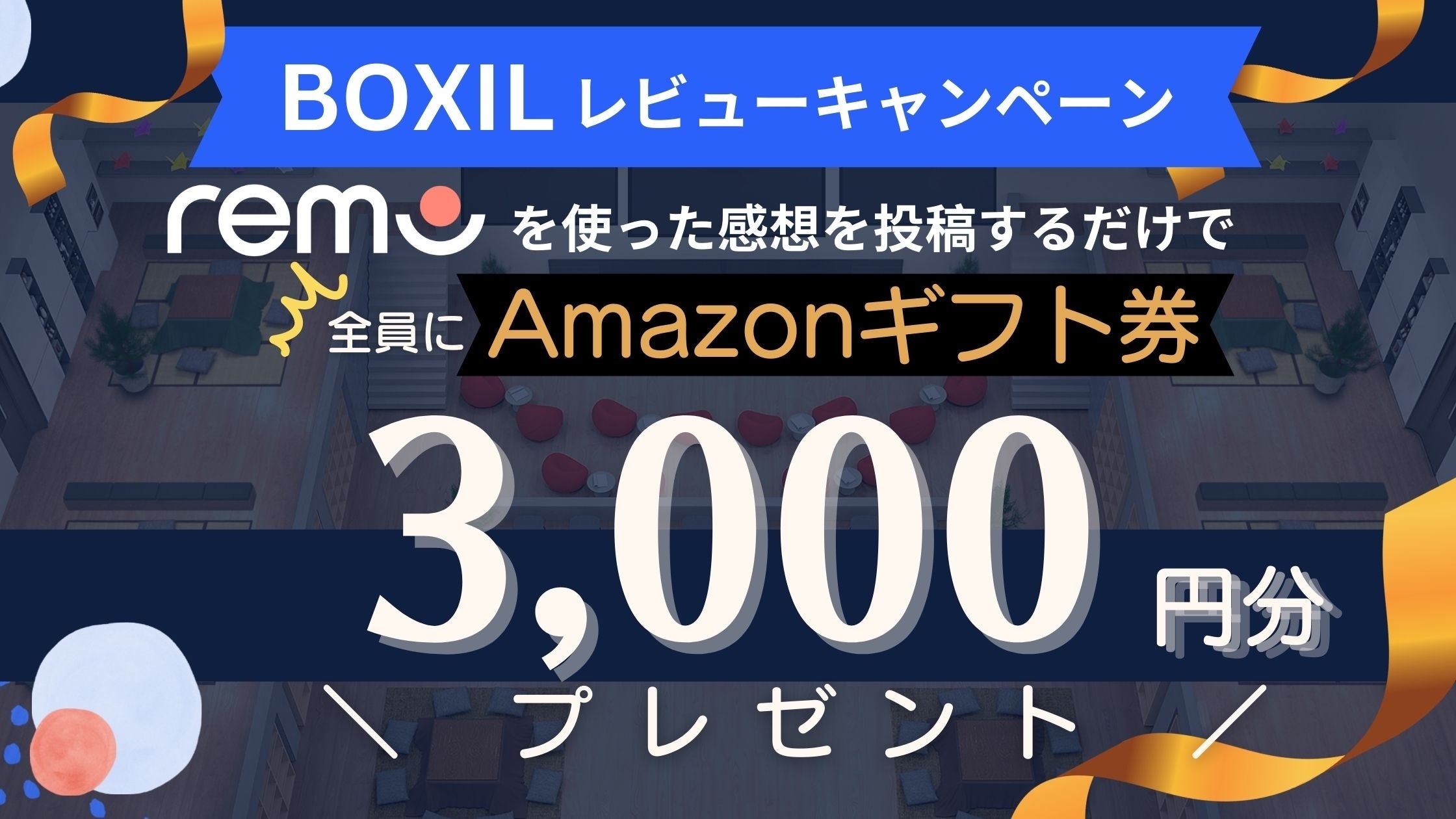 「BOXIL SaaS」で「Remo」に関してのレビューを書くと、Amazonギフト券3,000円がプレゼント