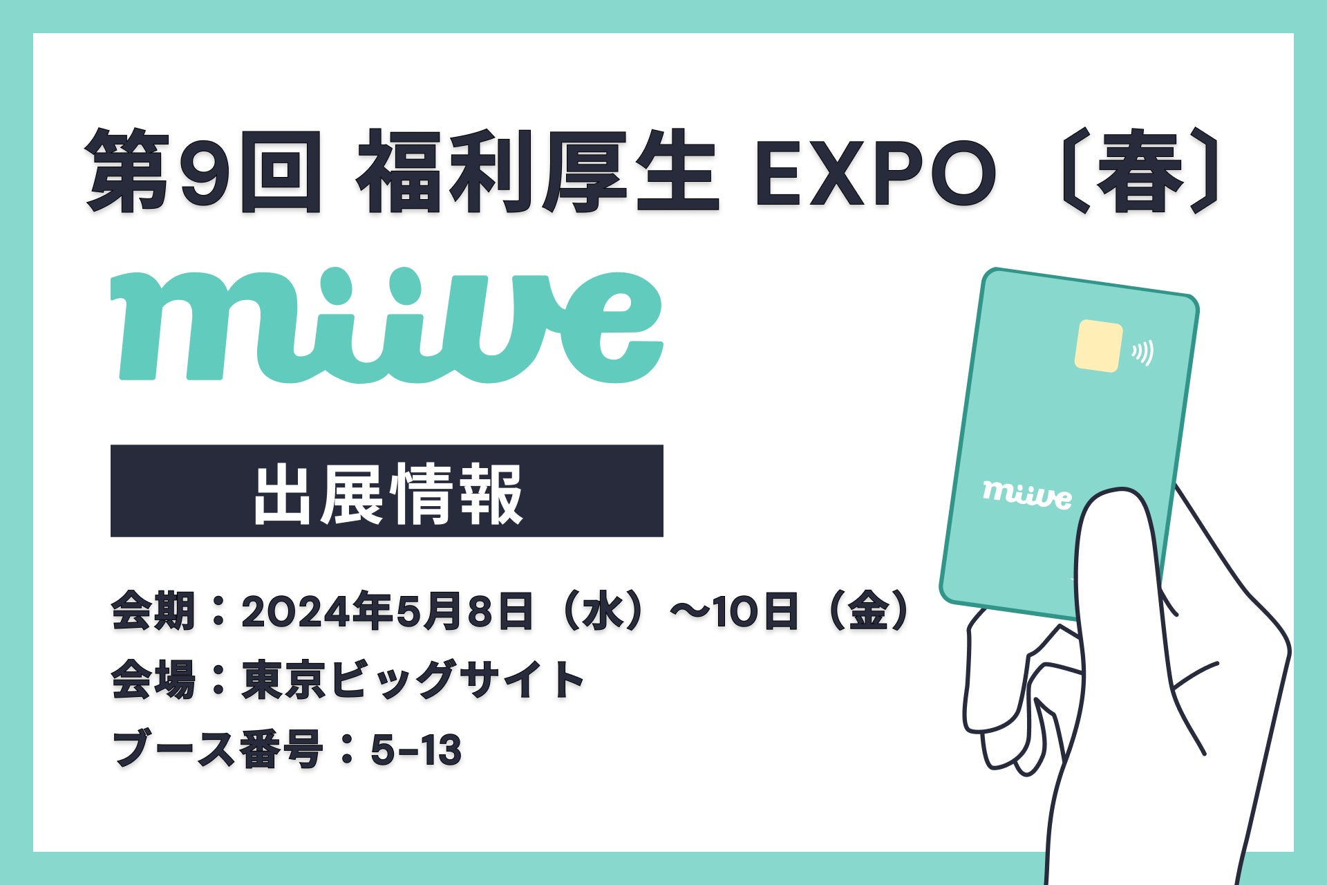株式会社miiveが提供する、カードとアプリを活用したポイント型の新しい福利厚生プラットフォーム「miive」が、5月8日から10日に東京ビックサイトで開催される「第9回 福利厚生 EXPO〔春〕」に出展することをお知らせいたします。