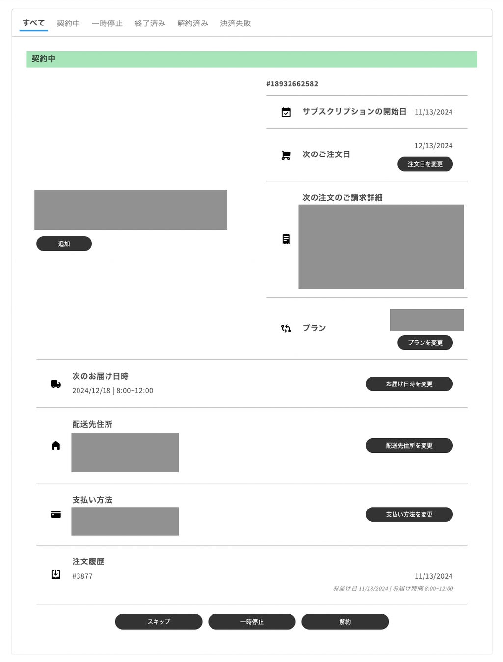 ・次回注文日の1日前まで変更可能 => 11月14日の0時より契約を変更できなくなります。
