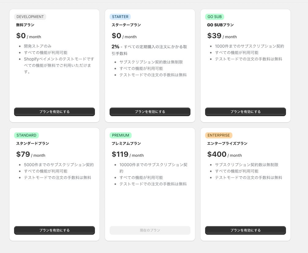 ※ 開発ではないストアでGo Sub Development Planを使用すると、スタータープランと同じように2%の手数料が発生しますので、ご注意ください。