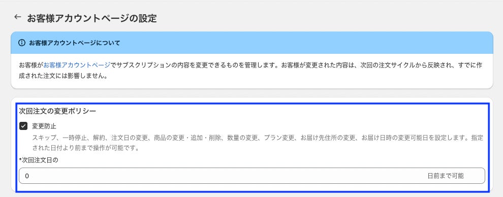 お客様アカウントページから次回注文の変更ポリシーの変更防止機能を更新いたしました。