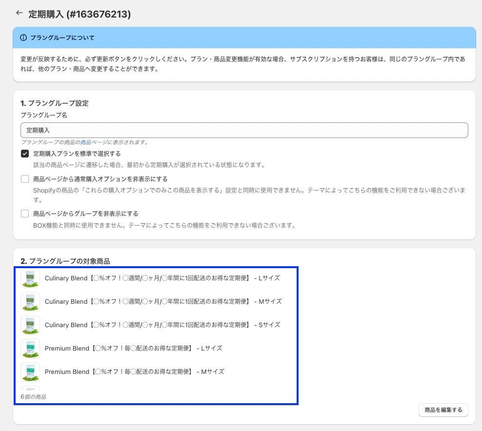 サブスクリプショングループ設定ページのグループ商品のリストがアルファベット順に表示されるようになりました。
