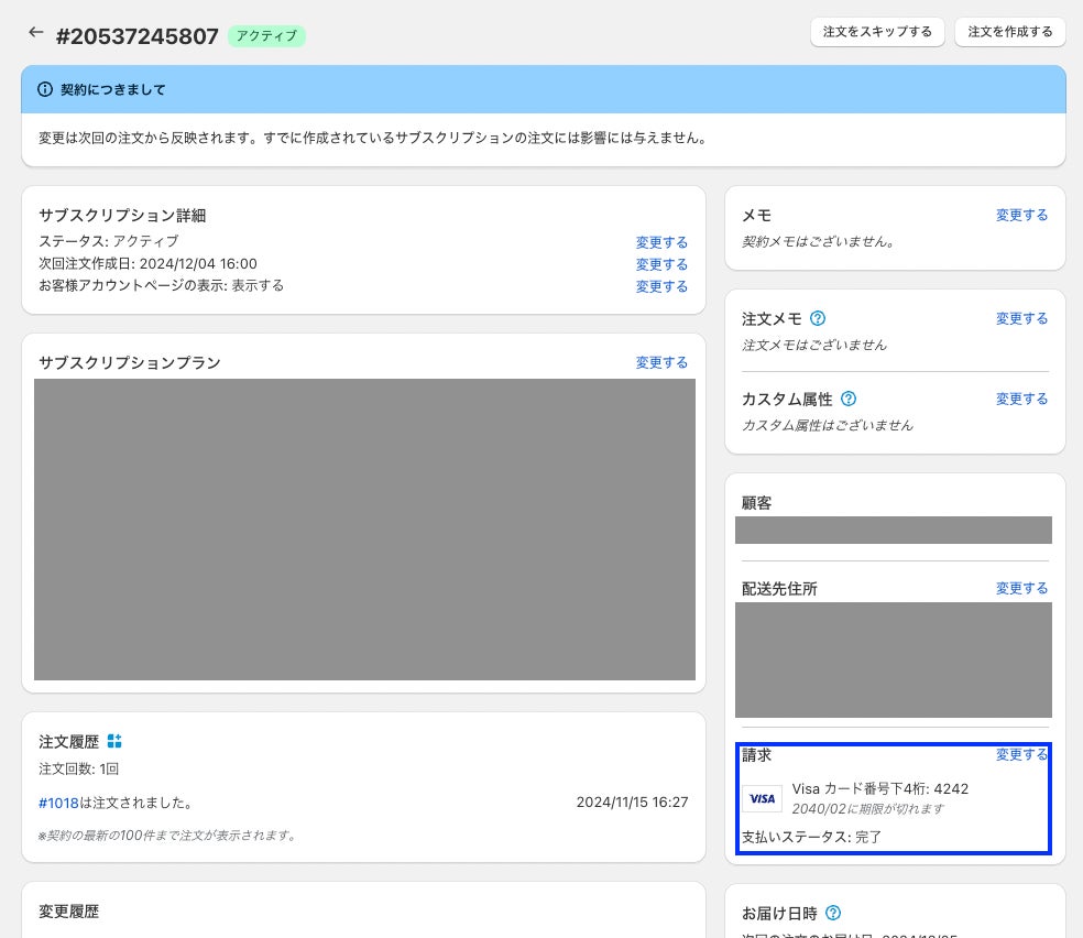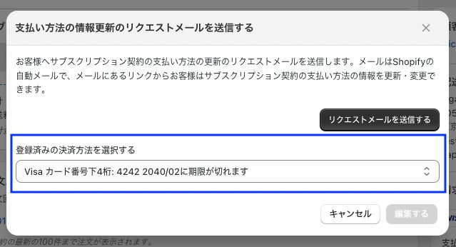 アプリ管理画面の契約ページから、お客様が既にShopifyで登録済みの決済方法へ変更ができるようになりました。