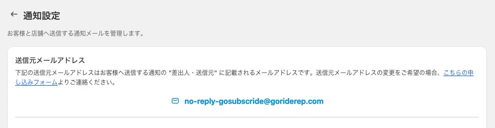通知設定ページに送信元メールアドレスの変更の申し込みフォームリンクの追加
