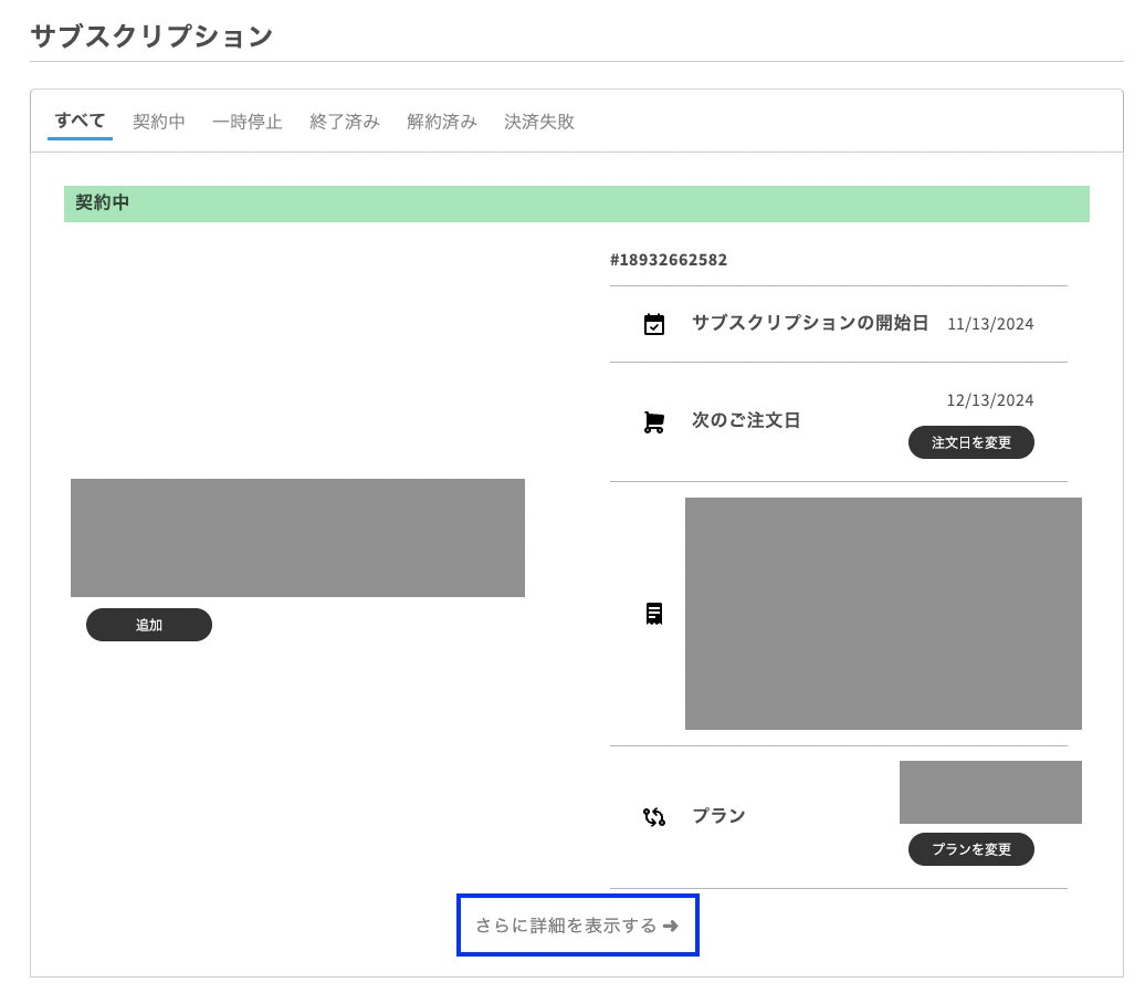 お客様アカウントページの契約の全ての詳細を最初から表示する設定