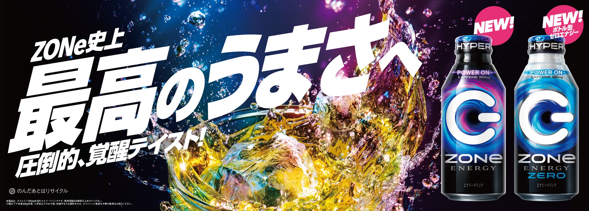 - 「HYPER ZONe」がリニューアル登場!味わいの好意度は126%へ大幅UP!圧倒的覚醒テイストで「ZONe」史上最高のうまさへ。ゼロカロリー「HYPER ZONe ZERO」も4月4日(火)より販売