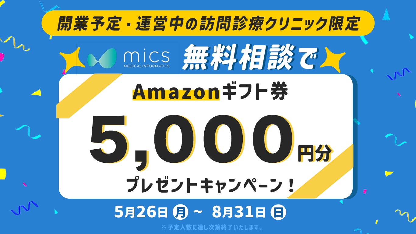 在宅医療関連サービスを幅広く展開するメディカルインフォマティクス株式会社(本社:東京都千代田区、代表取締役:佐々木美樹)は、これから訪問診療クリニック開業を予定している医師や、すでに開業している訪問診療クリニックを対象に、開業・運営に関する無料相談を受けていただいた方全員に「Amazonギフト券5,000円分」を進呈するキャンペーンを開始しました。