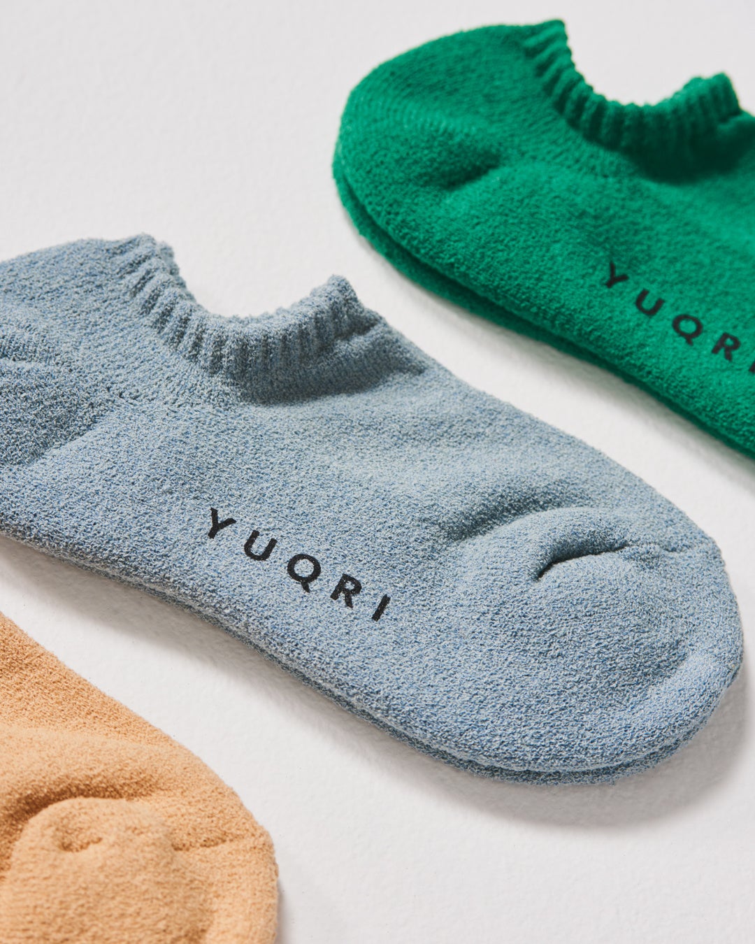 ループ状で膨らみのある糸を24Gの機械でパイル編みにすることで、さらにクッション性を感じる履き心地になっています。ふんわりした履き心地とサラッとしたタッチ感に新鮮さを感じていただけます。