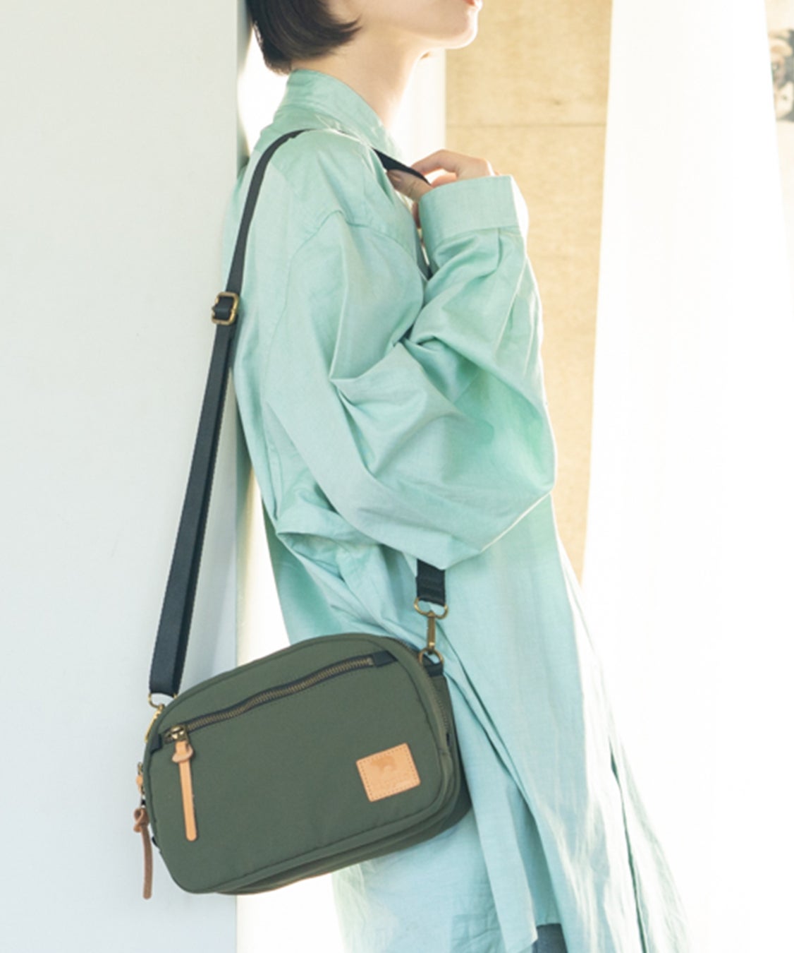 外側のポケットが立体的になっている、フォルムがかわいいBOX型のショルダーバッグ。小ぶりな見た目ですが、収納力は侮れません。最低限持ち歩きたい財布やちょっとした小物はもちろん、500mlのペットボトルが縦にスッポリ入ってしまうんです。メインエリアのファスナーは大きく開くので、何がどこにあるか一目瞭然。普段のちょっとそこまでのおでかけや、旅行先でのサブバッグなどたくさんのシーンで活躍してくれます。