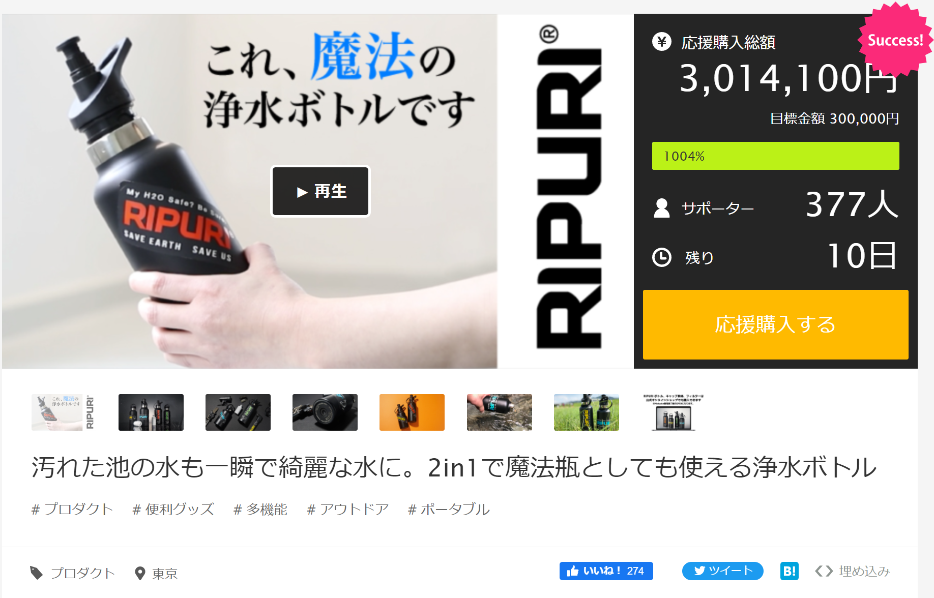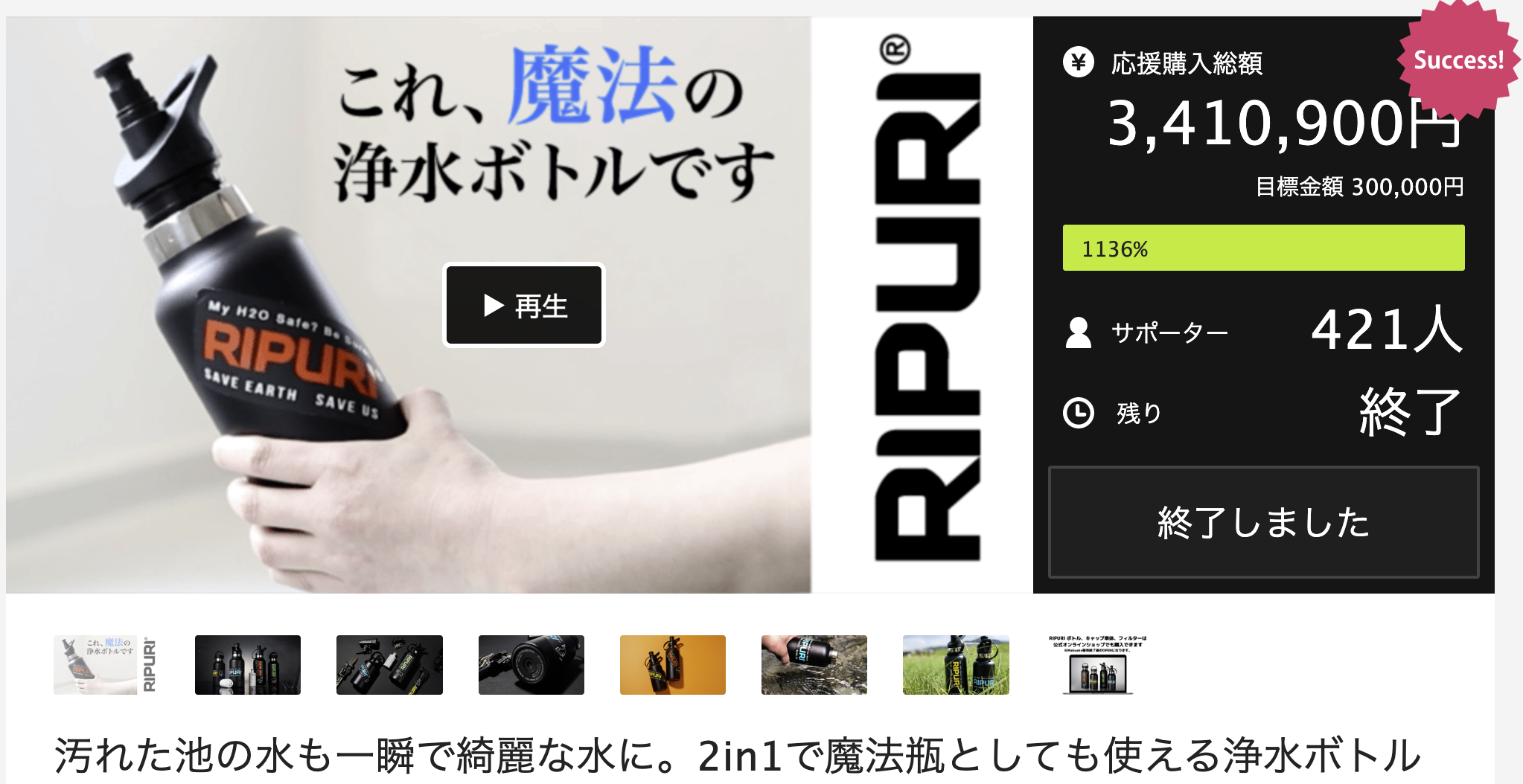 4月30日クラウドファンディングはプロジェクトは終了しました。なんと目標の10倍の支援金を集めました。