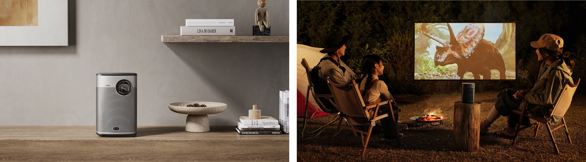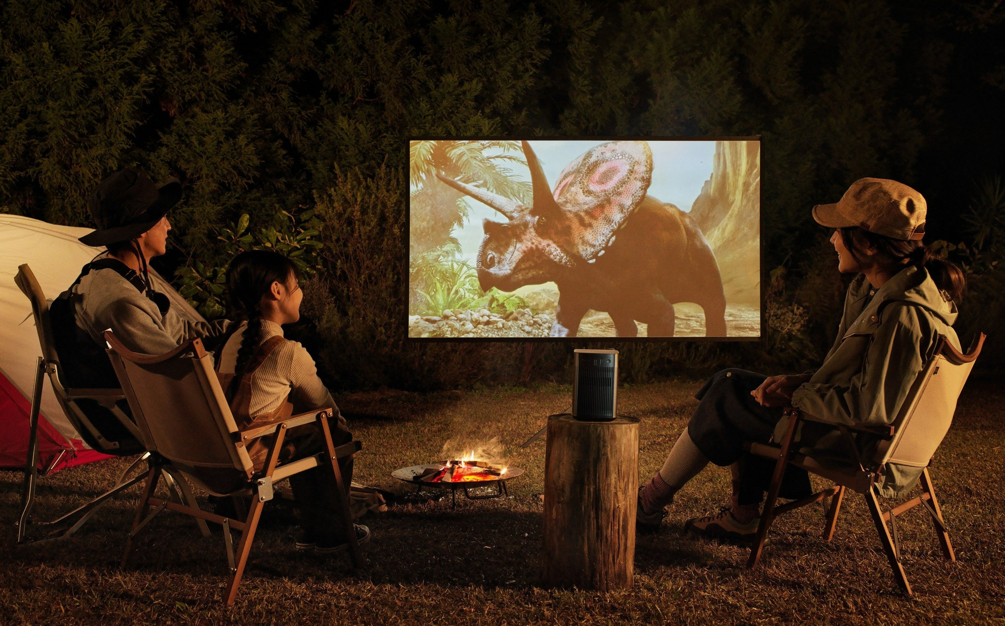 「Halo+」は、900ANSIルーメンという、日本のポータブルプロジェクター市場において圧倒的な明るさを誇るポータブル型スマートプロジェクターです。本体にバッテリーを内蔵しているため、最大4時間まで映像を投影することができ、Harman/Kardon社製の5Wスピーカーを2基搭載。アウトドアでの使用にも最適です。さらに、コンパクトなデザインでありながら、5,000以上のアプリを自由にダウンロードできるAndroid TV 10.0を加えて様々な自動調整機能も搭載されており、まるで持ち歩ける映画館のように、簡単かつ手軽な映像投影を実現しました。