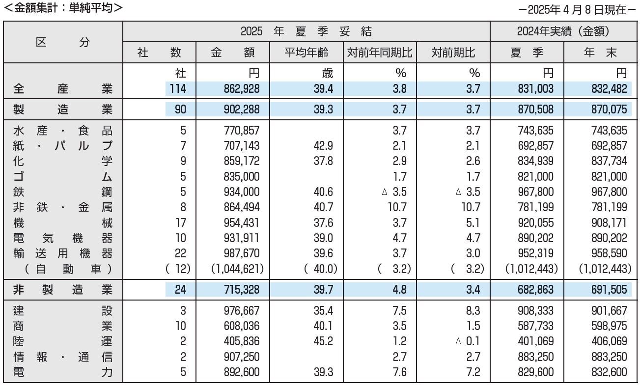 「2025年夏季賞与・一時金の妥結水準調査」